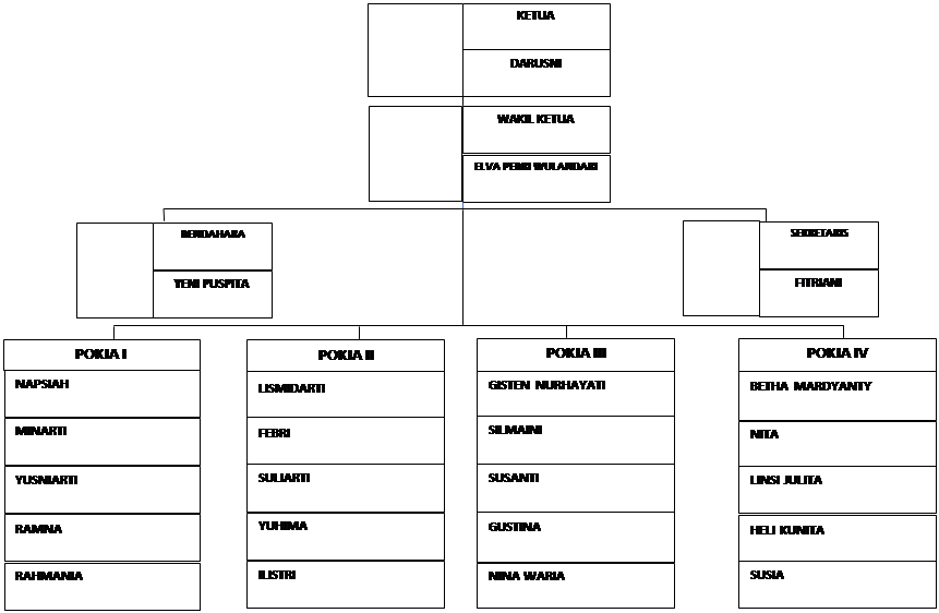 - Membuat laporan basil kegiatan kepada Tim Penggerak PKK Kecamatan dengan tembusan kepada Ketua Dewan Penyantun Tim Penggerak PKK setempat;